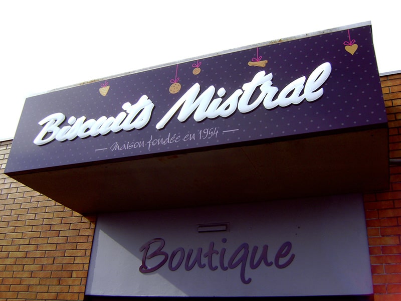 Site : Quetigny (21) Type : Caisson lumineux évidé Caractéristiques : Caisson lumineux alu évidé laqué marron, lettres en plexi diffusant épais, éclairage par Leds, seconde enseigne en lettre plexi diffusant fixées sur lisses.